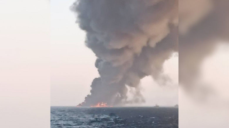 Вспомогательное судно военно-морских сил Ирана загорелось во время учений в Оманском заливе, неподалеку от порта Джаск, сообщает агентство Mehr со ссылкой на военных.