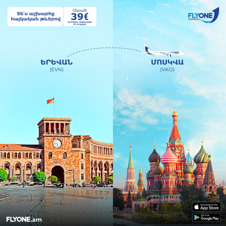 С разрешения авиационных властей Армении и Российской Федерации авиакомпания FLYONE ARMENIA с 1 марта этого года начинает выполнение регулярных прямых рейсов по направлению Ереван - Москва - Ереван.