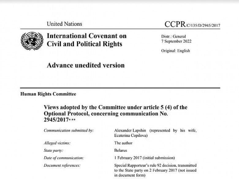 Комитет ООН по правам человека вынес решение в поддержку журналиста и блогера, гражданина Израиля Александра Лапшина, признав Беларусь и Азербайджан ответственными за его преследования.