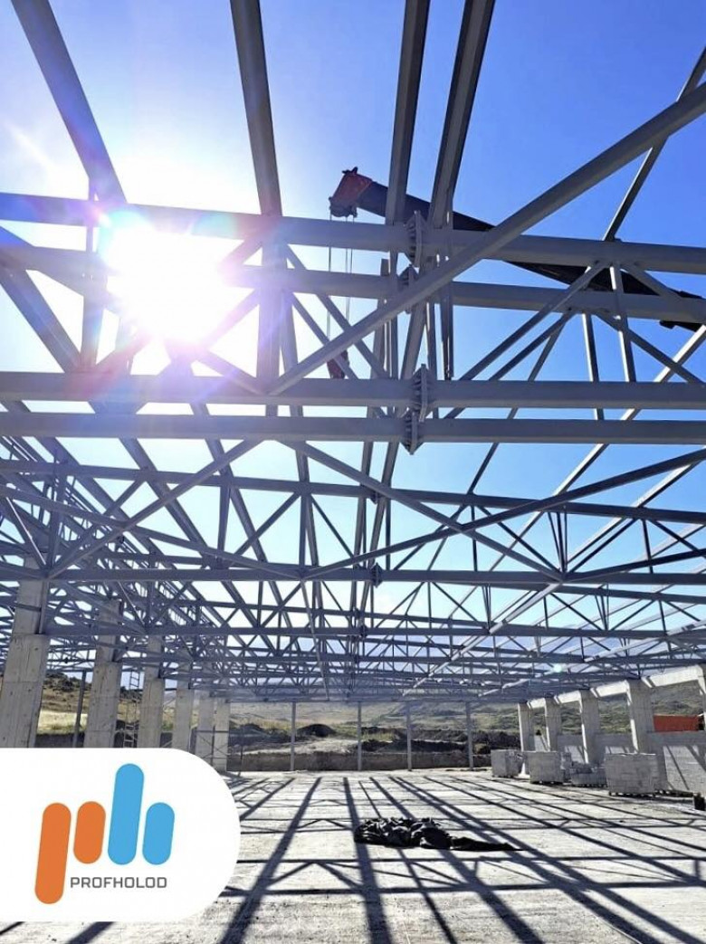 Для строительства здания, в котором расположится производство безалкогольных напитков, мы произвели более 800 кв. м стеновых и более 3700 кв. м кровельных сэндвич-панелей с PIR Premier и более 450 кв. м фасонных элементов. Толщина стеновых и кровельных сэндвич-панелей – 100 мм.