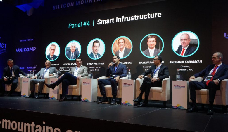 Организованная в рамках итогового международного технологического саммита Silicon Mountains 2022 панельная дискуссия «Умная инфраструктура» собрала руководителей и представителей информационных и телекоммуникационных компаний Армении, Комиссии по регулированию общественных услуг (КРОУ), а также Союза работодателей информационных и коммуникационных технологий (ICTEM) под одной крышей. В панельной дискуссии приняли участие генеральные директоры компаний Ucom, Вива-МТС, «Ростелеком» и «Рединет», начальник департамента телекоммуникаций КРОУ Геворг Геворгян и президент UEICT Армен Балдрян.