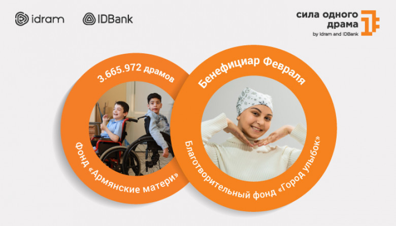 IDBank и Idram подводят итоги январской программы инициативы «Сила одного драма». Собранная за январь сумма, 3 665 972 драмов, была направлена в благотворительный фонд «Армянские Матери».