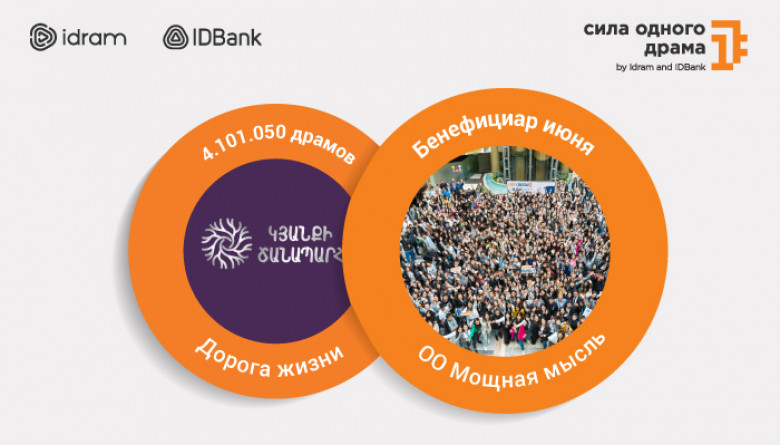 IDBank и Idram подводят итоги майской программы инициативы «Сила одного драма», бенефициаром которой стала благотворительная общественная организация «Дорога Жизни»,  которая занимается диагностикой, обеспечением лекарствами и лечением детей с эпилепсией. Собранная сумма в размере 4 101 050 драмов будет направлена ​​ на облегчение забот семей - бенефициаров.