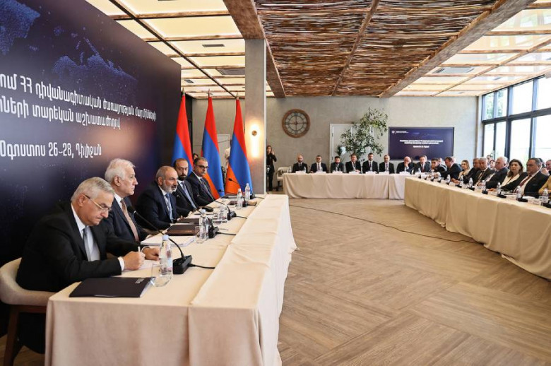 Դիլիջանում երեկ մեկնարկել է օտարերկրյա պետություններում Հայաստանի դիվանագիտական ներկայացուցչությունների ղեկավարների տարեկան աշխատաժողովը, որի մեկնարկին երեկ ներկա են գտնվել վարչապետ Նիկոլ Փաշինյանը, նախագահ Վահագն Խաչատուրյանը, փոխվարչապետներ, այլ պաշտոնյաներ: