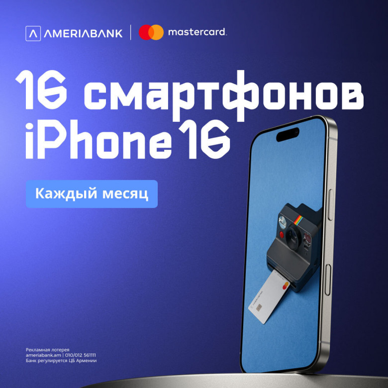 Заказав новую карту Mastercard в Америабанке и активировав ее, клиенты также примут участие в розыгрыше 48 iPhone 16 – в рамках акции до конца года ежемесячно, т. е. в октябре, ноябре и декабре, будут разыгрываться по 16 iPhone 16.