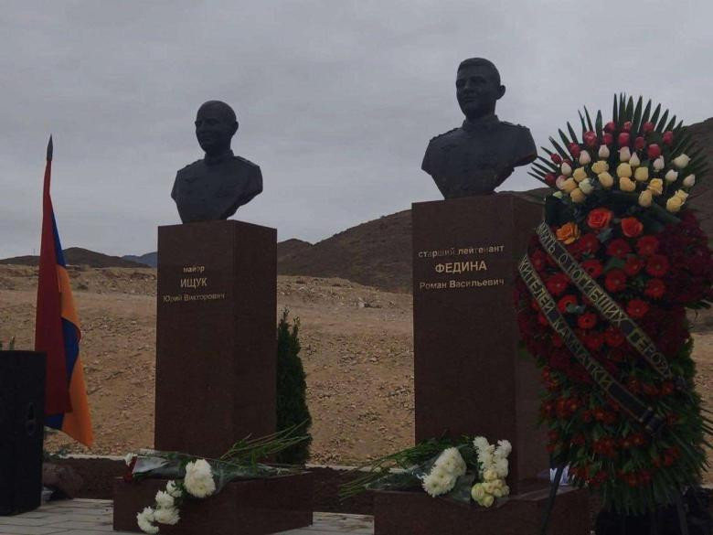 Сегодня, в четвертую годовщину памяти, представители Международного гуманитарного фонда «МИР» и российские военнослужащие почтили память боевых товарищей – лётчиков армейской авиации, чьи имена навечно занесены в историю авиационной базы «Эребуни», дислоцированной в Армении. На мемориальном комплексе «Холм Памяти» в селе Ерасх (Араратская область) в Армении по инициативе Международного гуманитарного фонда «МИР» российские военнослужащие, представители Министерства обороны Республики Армения, губернатор, сотрудники администрации и представители общественности Араратской области, учащиеся русской школы № 21 Министерства обороны России в Ереване возложили венки и цветы к бюстам майора Юрия Ищука и старшего лейтенанта Романа Федины, сбитых из ракетного комплекса ВС Азербайджана 9 ноября 2020 г.
