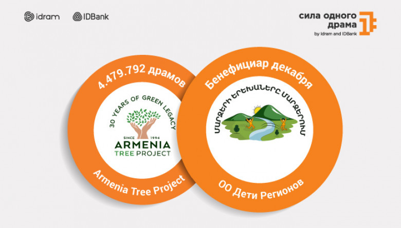 Армия послов доброй воли программы „Сила одного драма“ с каждым днем растет, а это значит, что в следующем году мы поможем осуществить еще больше мечт. Чтобы присоединиться к добрым делам «Силы одного драма», многого не требуется. Просто совершайте все ваши платежи с помощью приложения Idram&IDBank, онлайн-платформ IDBanking.ambanking.idram.am, через терминалы Idram и IDBank, и за каждый Ваш платеж компании пожертвуют один драм на реализацию важных программ и инициатив.