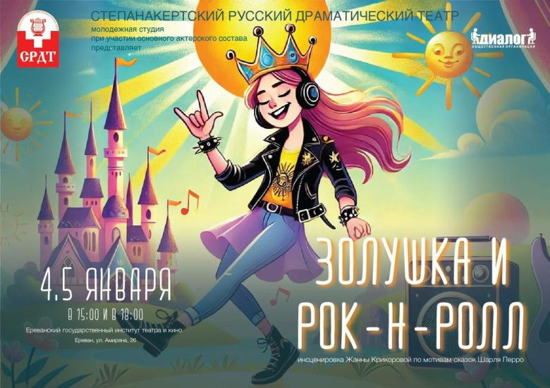 4 и 5 января 2025 года юных зрителей Еревана ждет захватывающий новогодний спектакль «Золушка и рок-н-ролл» по мотивам сказок Шарля Перро.