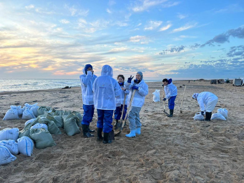 Команда волонтеров уже находится на месте и активно занимается очисткой побережья. Среди добровольцев - сотрудники «Евразии», партнёры и неравнодушные молодые люди, готовые помочь в борьбе с последствиями экологической катастрофы.
