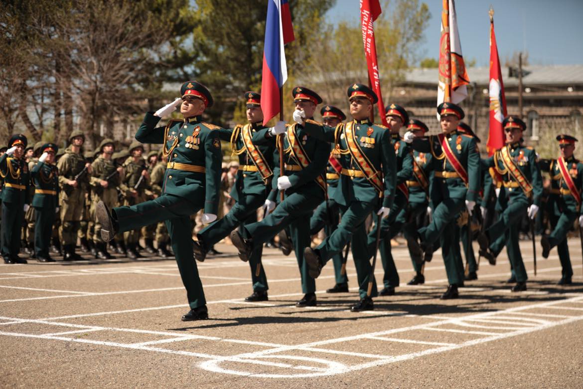 После возложения цветов к вечному огню у монумента «Мать Армения», на 102 военной базе состоялся праздничный парад. Гости российской базы наблюдали за исторической реконструкцией событий Великой Отечественной войны, а также выступлением спецподразделений ВС РФ.