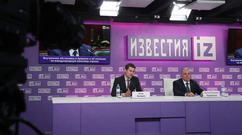 Вчера в международном информационном центре «Известия» состоялась пресс-конференция лидера движения «Всеармянский фронт», бывшего министра обороны, генерал-майора Аршака Карапетяна, в которой в онлайн-режиме имели возможность принять участие также журналисты из Армении. В центре обсуждения были армяно-российские отношения, визит министра иностранных дел РФ в Армению, внутриполитическая ситуация в нашей стране. Карапетян отметил, что необходимо продолжать развивать отношения с Российской Федерацией, а не испортить их. «Договор между Арменией и Россией прекрасно работает против Турции. ОДКБ тоже прекрасно работает, ее нужно немного модернизировать по отношению к Азербайджану и другим нашим соседям и все», - сказал он.