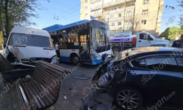Ժամը 11:00-ի սահմաններում թիվ 97 երթուղին սպասարկող ավտոբուսը Ռուբինյանց փողոցում բախվել է ճանապարհի թույլատրելի հատվածում կայանված «Mercedes Sprinter» մակնիշի ավտոմեքենային, ինչի հետևանքով էլ «Mercedes»-ը դուրս է եկել երթևեկելի գոտուց, բախվել ծառին և ճանապարհի թույլատրելի հատվածում կայանված «Mazda»-ին, վերջինն էլ առաջ ընթանալով բախվել է ճանապարհի թույլատրելի հատվածում կայանված «Honda Accord» մակնիշի ավտոմեքենային, իսկ հարվածի արդյունքում ավոտեմքենայի դետալներն ու ծառի ճյուղերը վնասել են Ռուբինյանց 1 շենքի բակում կայանված «Toyota» մակնիշի ավտոմեքենան, գրել է «Շամշյանը»։