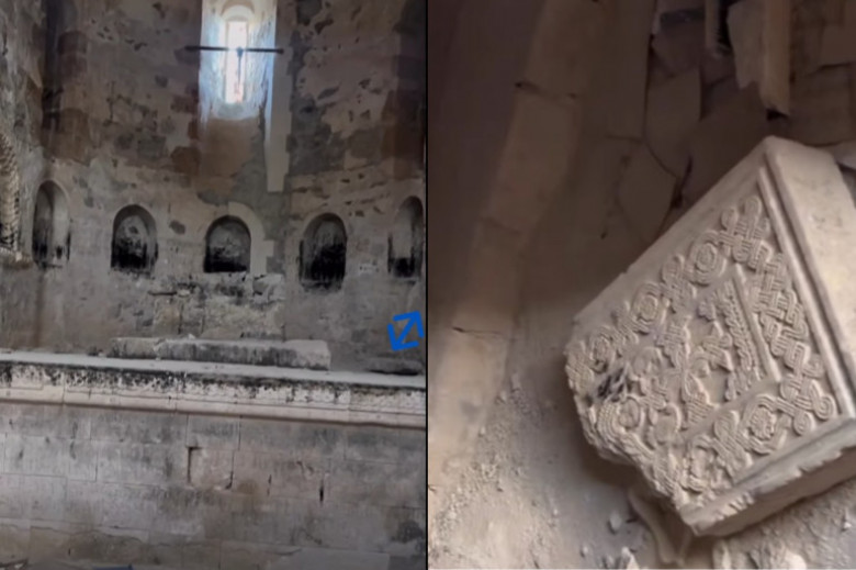 Տարածված տեսանյութի մեջ երևում է, որ անհետացել են բեմի վրա դրված եկեղեցու մանրակերտները, Սուրբ սեղանին հենած խաչքարը։ Ջարդել են գեղաքանդակ խաչքարի ստորին հատվածը, որն ընկած է գետնին։ Աջակողմյա որմնախորշի մեջ տեղադրված քանդակը երեսնիվայր ընկած է։