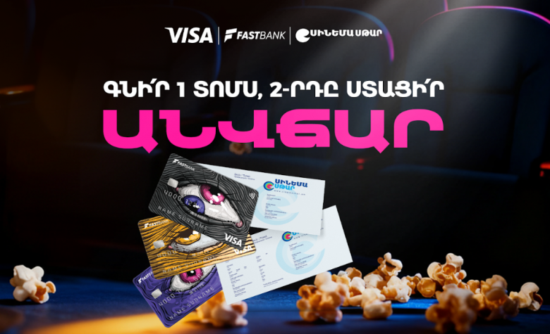 Ֆասթ Բանկի հաճախորդները Սինեմա Սթար (Cinemа Star) կինոթատրոններում Visa ԱկնՔարտով տոմս գնելու դեպքում նույն ցուցադրության երկրորդ տոմսը կստանան անվճար։ Առաջարկը գործում է միայն Դալմա և Ռիո մոլերի կինոթատրոններում ցանկացած հրապարակային ցուցադրության ֆիլմի կամ մուլտֆիլմի համար։