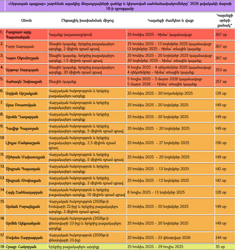 Այսպիսով, 18 արդարների գործով անցնող բոլոր մեղադրյալներն էլ դեռ սահմանափակումների տակ են` չնայած ոմանց կարող եք հանդիպել դրսում: