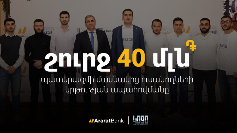 Տարիներ առաջ, երբ ԱրարատԲանկը միացավ հայրենիքի պաշտպանների՝ պատերազմի մասնակից ուսանողների կրթության ապահովման նախաձեռնությանը, դժվար էր կանխատեսել, որ «4090 Բարեգործական» հիմնադրամի հետ ձևավորվող համագործակցությունը կվերածվի ռազմավարական գործընկերության` ուղղված 4-օրյա և 44-օրյա պատերազմների մասնակից զինծառայողների կրթության շարունակական ապահովմանը։