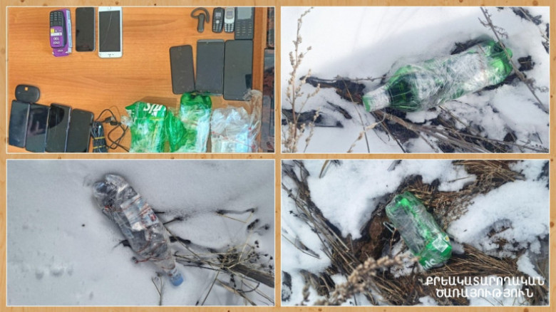 Տարաներում առկա են եղել 13 բջջային հեռախոս, 4 բջջային հեռախոսի լիցքավորման լար, 2 բաժանորդային քարտ, 1 անլար ականջակալ և 1 wi-fi սարք:
