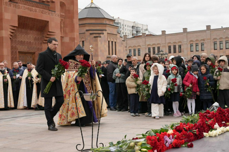 Ցեղասպանության միջազգային ճանաչման և դատապարտման մասին հայտարարությունները, որոնք կատարում են պետությունների ղեկավարները, օտարազգի մտավորականներն ու պատմաբանները, կարևոր ուղերձներ են Թուրքիային՝ առերեսվելու սեփական պատմությանը, ճանաչելու հայոց ցեղասպանությունը։ Սակայն Օսմանյան կայսրության իրավահաջորդը` ներկայիս Թուրքիան, շարունակում է ոչ միայն ժխտել Ցեղասպանության փաստը, այլև դիվանագիտական ճնշումներ կիրառել այդ ոճիրը դատապարտող երկրների նկատմամբ։ Արարողության ավարտին հյուրերը Եղեռնի զոհերի հիշատակին նվիրված հուշակոթողի մոտ ծաղիկներ խոնարհեցին։ Ռուս լրագրողի այն հարցին, թե ինչ խոհուրդ ունի ապրիլի 24-ը հայերի համար, Եզրաս սրբազանը պատասխանեց՝ «Եղեռնի ճանաչումը մեզ համար սրբազան պարտք է և հավատարմության վկայություն»: