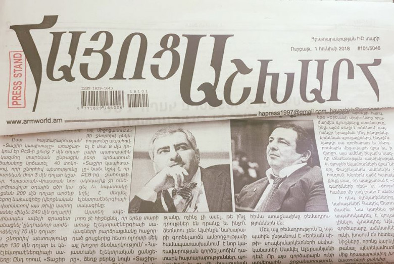 Իշխանությունների մոտ ծառայության անցած թերթերը մեր լրատվական դաշտում բավականին շատ են։Ահա ամենից կարկառուն օրինակը՝ բոլոր ժամանակների իշխանությունների հետ աշխատելու, նրանց ստրուկն ու հաճախորդը լինելու հարցում յուրակատուկ և ընդգծված ադապտացիա ունեցող «Հայոց աշխարհ» թերթոնը։ Վերջինս իր տերերին կորցնելու և որբանալու «ցավից» հուզված՝ այս օրերին տարատեսակ պատվերներ ընդունելով է զբաղված՝ ի վերջո հույս ունենալով «որդեգրվել» որևիցե մի տեղից։