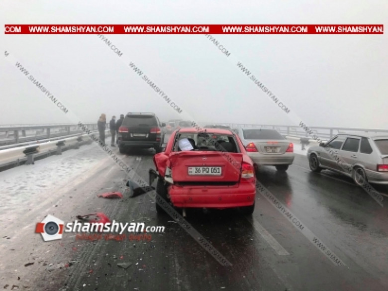 Արտակարգ իրավիճակ Աշտարակի կամրջի վրա․ մերկասառույցի պատճառով բախվել են 18 ավտոմեքենաներ (լուսանկարներ)