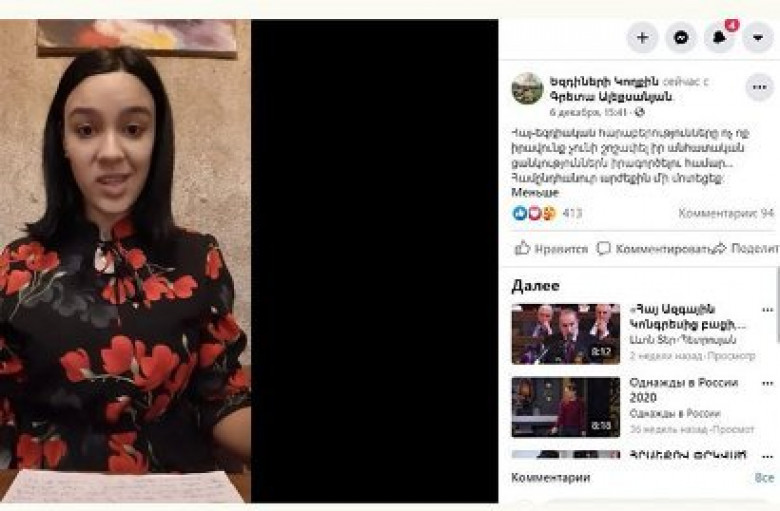 Մեկ այլ դեպքում, Ոստիկանության ակադեմիայի շրջանավարտ Գրետա Ալեքսանյանը ֆեսյբուք սոցիալական ցանցում «Եզդիների կողքին» անվամբ գրանցված էջով ուղիղ եթերի ընթացքում ընդդիմությանը միացած եզդիների հայտարարությունը, եզդիական դրոշի հանրահավաքում հայտնվելը որակում է, որպես «Հայաստանի պառակտման գործընթաց»։ Ավելին, եզդիների՝ այս դեպքում մեր, քաղաքական հայտարարությունը գնահատում է, որպես հայ-եզդիական բարեկամությանը վնասելու փորձ։ Ընդ որում նա խեղաթյուրում է իրականությունը և «Սահլդան» նախաձեռնության հայտարարությունը ներկայացնում է, որպես ամբողջ համայնքի անունից արված հայտարարություն։