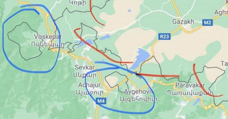 Կապույտ օղակի մեջ արված տարածքների մասինա խոսքը: Կարմիրը մեր կորցրած վարելահողերնա մոտավոր գծած: Պայմանագրայինները հետ են կանչվել պոստերից: Աղբյուր կա, որ ասումա հրամանը արդեն տվածա։