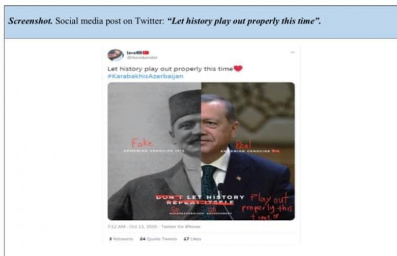 Միշտ պետք է հաշվի առնել նաև Ադրբեջանի ու Թուրքիայի նախագահների կողմից Արցախում 2020թ. սեպտեմբեր-նոյեմբեր ամիսների պատերազմի համեմատությունները Օսմանյան կայսրությունում Հայոց ցեղասպանության, Բաքվում հայերի զանգվածային ջարդերի հետ՝ օրինակ 2020թ. դեկտեմբերի 10-ի ելույթներով դրանց կազմակերպիչներին ու կատարողներին, այդ թվում՝ Կովկասյան իսլամական բանակի անդամներին գովերգելը: