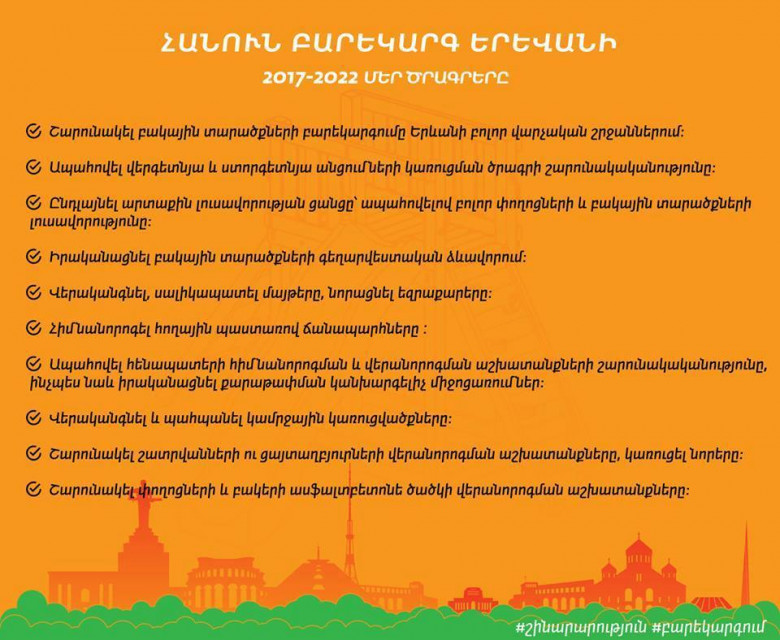 Հանուն բարեկարգ Երևանի ծանոթացեք մեր տեսլականին և առաջիկա ծրագրերին 2017-2022թթ. համար շինարարության, բարեկարգման ոլորտներում: