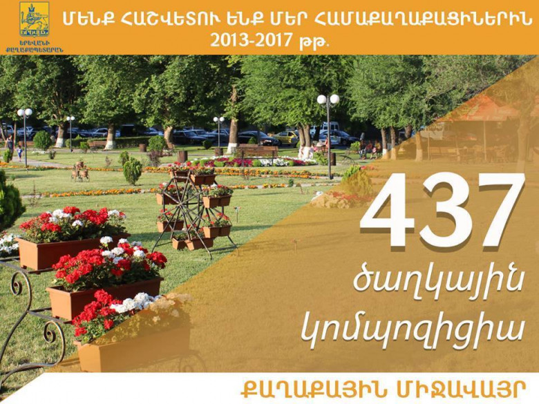 2013-2017թթ.Երևանում հարմարավետ և մատչելի միջավայրի ապահովման ծրագրերի շրջանակում 437 ծաղկային կոմպոզիցիա է տեղադրվել կանաչ ու բարեկարգ հատվածներում: