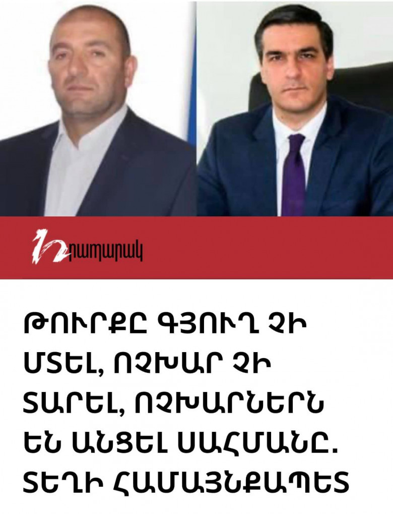Դանակով և քիմիական նյութերով հարձակում Ճապոնիայում անվադողերի գործարանում. վիրավորվել է 15 մարդՓաստաբան Լևոն Բաղդասարյանը «Եվրոմեդիա24»–ի կողմից արժանացել է «Արդարության պահապան» մրցանակին (տեսանյութ) Թբիլիսիի դատարանը կալանավորել է Վրաստանի պաշտպանության նախկին նախարարին Այս տարի ուժեղ Հայաստանը կհաղթի․ Նարեկ ԿարապետյանՉորս տրամադրություն Նոր տարվա սեղանի համար Շիրակում կրшկել են Գյումրիում դաջվածքներ անող տղամարդու աչքին․ վերջինը տեղափոխվել է հիվանդանոցՔիմ Քարդաշյանը՝ «Ռուսական ձմեռվա» մեջ. Վինտաժային Mugler՝ Սուրբ Ծննդյան երեկույթինՄեր երկրին պետք է քաղաքի` քայլ առ քայլ զարգացման պլան, որպեսզի մենք քսանմեկերորդ դարի քաղաք ունենանք․ Նարեկ ԿարապետյանԴա իմ սխալն էր. Լևանդովսկու անկեղծ խոստովանությունը հավաքականի խաղընկերների մասին«ՀայաՔվեն» ամփոփում է 2025 թվականը Politico-ն հակամրցանակներ է շնորհել Սարկոզիին, Թրամփին և ֆոն դեր Լայենին Ճապոնիայում 67 մեքենայի մասնակցությամբ վթար է տեղի ունեցել մերկասառույցի պատճառովԶրույց-քննարկում Նոր Նորքի և Ավանի բնակիչների հետ. ՀայաՔվեՄետաղների գների աճի պատճառով Հայաստանի հանքերը 2026 թ-ին ավելի շատ հարկ կվճարեն. Ջհանյան Հետվճարը չի կարող լուծել թոշակառուների խնդիրները․ Դավիթ ՀակոբյանԿայացավ Հայաստանի բասկետբոլի ֆեդերացիայի տարվա ամփոփիչ երեկոն«Գագիկ Ծառուկյան» բարեգործական հիմնադրամի աշխատակազմն առատ նվերներով այցելել է Գյումրի՝ հարյուրավոր փոքրիկների համար իրականություն դարձնելու Նոր տարվա հրաշքը ԵՄ-ն Trip-ում փայ է ուզում, Սյունիքում նոր զարգացումներ են սպասվում «Մեր ձևով» շարժման առաջնորդ Սամվել Կարապետյանը նույնիսկ անազատության մեջ շարունակում է հոգալ հայ մանուկների մասին Արցախցիների վերադարձի իրավունքը քաղաքական առևտրի առարկա չէ. Ավետիք ՉալաբյանՔաղաքական կոնսոլիդացիայի բանաձևը․ ընդդիմություն՝ մի քանի խոշոր կոալիցիաներով․ Արմեն Մանվելյան«ՀայաՔվե» ազգային քաղաքացիական միավորումը սրտանց շնորհավորում է Տեր Միքայել արքեպիսկոպոս Աջապահյանին` ծննդյան օրվա առիթովՁյուն, քամու ուժգնացում, բուք, ցածր հորիզոնական տեսանելիություն․ եղանակն այս օրերին Հայաստանն ու Ադրբեջանը համատեղ ցանկանում են դուրս մղել ՌուսաստանինՅունիբանկը թողարկել է նվեր քարտեր Ընդդիմադիր գործիչները՝ դատախազության թիրախում Աֆրիկյան ստարտափը ստեղծում է արևային էներգիայով աշխատող մինի-էլեկտրական մեքենաներՊետք չէ նոր հեծանիվ հորինել իշխանափոխության համար. Իվանիշվիլին հաղթեց Սահակաշվիլիին. Էդմոն ՄարուքյանԱդրբեջանական բենզինի ներկրումը ո՛չ տնտեսական, ո՛չ քաղաքական հարց է, այլ՝ «բարտեր». Կամենդատյան Հայաստանը պետք է ունենա անխոչընդոտ ճանապարհ Ադրբեջանի տարածքով․ Մենուա ՍողոմոնյանԱնցած կիրակի Սանահինի վանական համալիրում մեզ բախտ վիճակվեց մաս դառնալ շատ անսովոր մի իրադարձության. Ավետիք ՉալաբյանՀանրայինը չի ցուցադրելու կաթողիկոսի ուղերձը Ոչ օլիմպիական մարզաձևերի միությունն արժևորել է 19 ֆեդերացիաների տարվա ձեռքբերումները Վաշինգտոնյան հուշագիր․ ում հաշվին է կառուցվում մեծ խաղը Անցնող տարվա արտաքին քաղաքական թոհուբոհի... «ծանր» գոլորշին. «Փաստ» Շարունակականություն՝ ընդդեմ ոչնչացման. «Փաստ» «Հաջորդ տարի մեր հանրությունն իր մաշկի վրա է զգալու առկա տնտեսական ռիսկերի անմիջական հետևանքները». «Փաստ» ՀՀ-ն օկուպացրած ռեժիմը շարունակում է տրորել պետական շահն ու այն արժեհամակարգը, որը երկրի կենսունակության ողնաշարն է. Աբրահամյան Որ գերատեսչություններն են ակտիվ և պասիվ եղել օրենսդրական նախաձեռնությունների հարցում. «Փաստ» Սուրբծննդյան լույսը՝ ճաղավանդակներից այն կողմ. բռնաճնշումներ Հայ ա