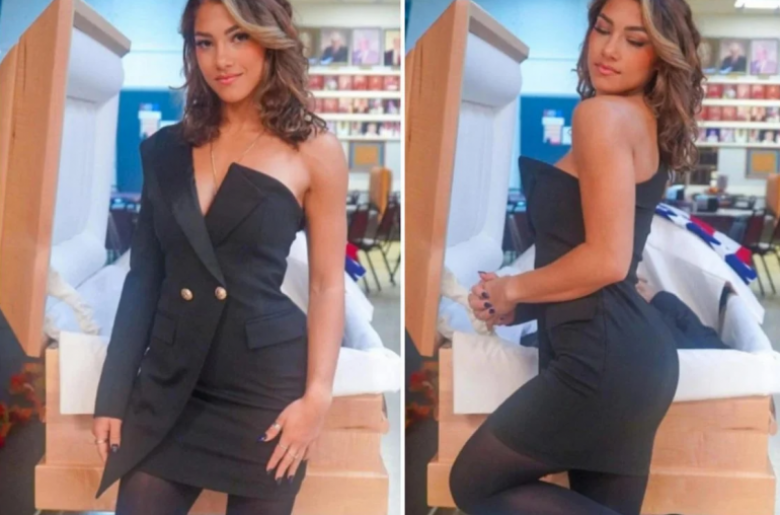 Ամերիկուհին ֆոտոսեսիա է անցկացնել հոր հոգեհանգստի ժամանակ՝ կեցվածք ընդունելով անմիջապես դագաղի ֆոնին (լուսանկարներ)