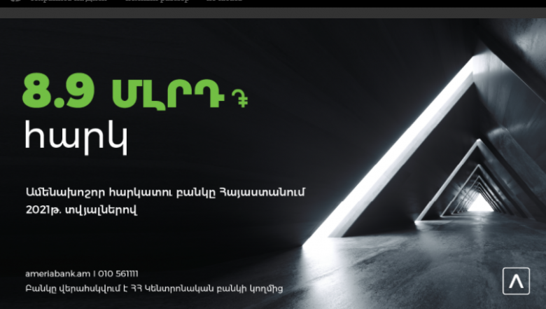 «2021 թվականին Ամերիաբանկը պետական բյուջե է վճարել 8.9 մլրդ ՀՀ դրամ հարկ` դառնալով ՀՀ բանկային համակարգի ամենախոշոր հարկատուն»: