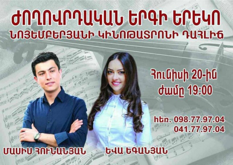 Մեր օրերում հոգևոր հացի պակաս ունենք : Այդ քաղցը լրացնելու , ոգևորություն արթնացնելու և ժողովրդական երգի գոհարները տարածելու համար երիտասարդ երգիչներ Մասիս Հունանյանն ու Եվա Եգանյանը որոշել են մեծ նախագիծ իրականացնել` կապված մարզերում ժող .երգը լայնորեն քարոզելու վերաբերյալ : Զրուցեցինք Մասիս Հունանյանի հետ , ով մեզ մանրամասներ պատմեց կապված համերգի հետ .