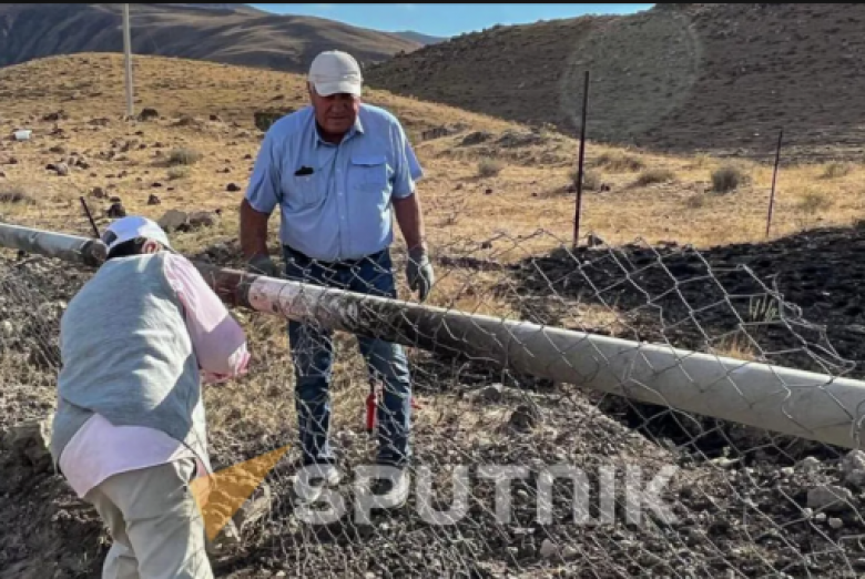 Այցելության պահին գյուղացիները վերանորոգում էին գազատարն առանձնացնող ցանկապատը։