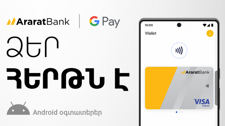 Քարտապանները հնարավորություն կունենան ԱրարատԲանկի Visa և Mastercard կրեդիտային և դեբետային քարտերը կցել Google Wallet թվային դրամապանակին, որը թույլ է տալիս վճարումներ կատարել ցանկացած վայրում, որտեղ ընդունվում են անհպում վճարումներ: