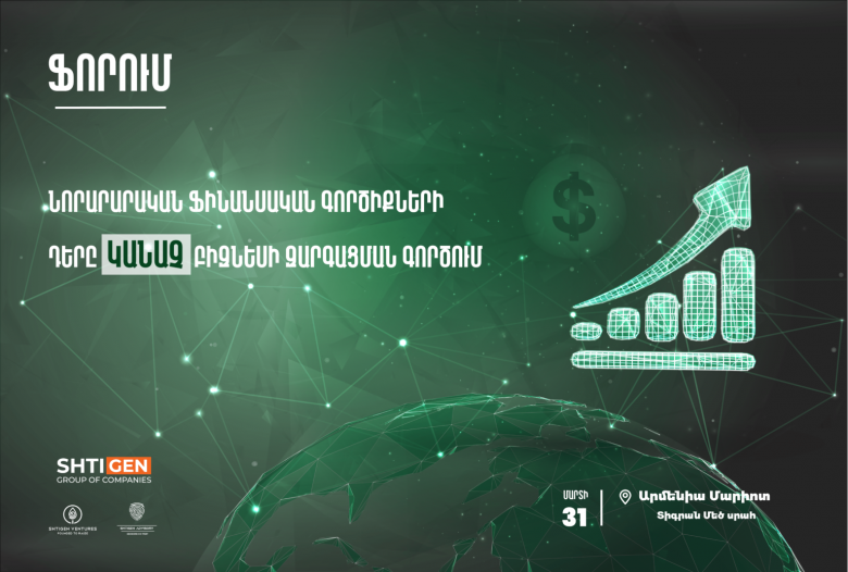 Shtigen ընկերությունների խումբը, Shtigen Advisory-ի  աջակցությամբ և Shtigen Ventures-ի ներգրավմամբ, կազմակերպում է ֆորում՝ «Նորարարական ֆինանսական գործիքների դերը կանաչ բիզնեսի զարգացման գործում» խորագրով։ Միջոցառումը տեղի կունենա ս.թ. մարտի 31-ին` ժամը 15:30-18:30, «Արմենիա Մարիոտ» հյուրանոցի «Տիգրան Մեծ» սրահում: