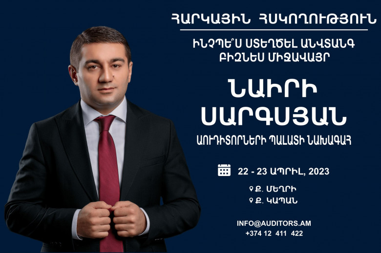 «Աուդիտորների Պալատ»-ի նախագահ Նաիրի Սարգսյանը Սյունիքում հանդես կգա «ՀԱՐԿԱՅԻՆ ՀՍԿՈՂՈՒԹՅՈՒՆ» թեմայով դասախոսությամբ