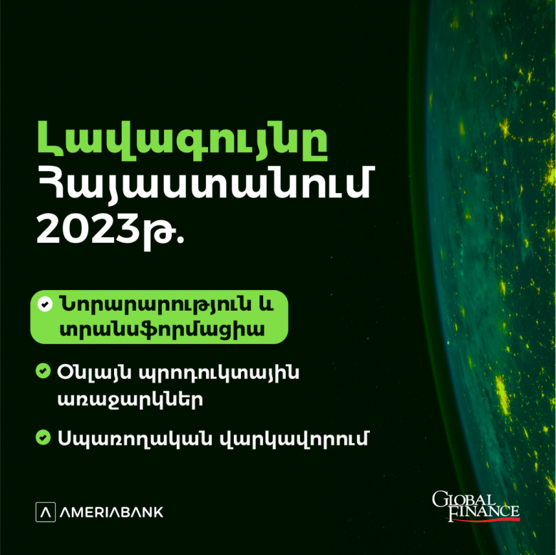 Ամերիաբանկն արժանացել է «Global Finance» միջազգային հեղինակավոր ամսագրի 3 մրցանակի «Աշխարհի լավագույն թվային բանկ» մրցանակաբաշխության շրջանակում, մասնավորապես` «Լավագույն նորարարությունը և տրանսֆորմացիան Հայաստանում 2023թ.», «Լավագույն օնլայն պրոդուկտային առաջարկները Հայաստանում 2023թ.» և «Լավագույնը սպառողական վարկավորման ոլորտում Հայաստանում 2023թ.»: