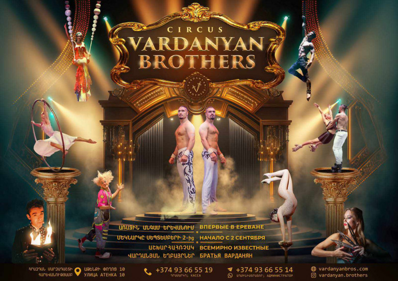 Վարդանյան եղբայրների կրկեսային մեծ շոու-ծրագիրը՝ առաջին անգամ Հայաստանում․ սեպտեմբերի 2-ին և 3-ին Երևանում հանդես կգան ուժային ակրոբատներ Գևորգ և Անդրանիկ Վարդանյանները, որոնք առավել հայտնի դարձան 2017 թվականին Ռուսաստանում կայացած «Минута славы» նախագծում հաղթելուց հետո։ Աշխարհի բազմաթիվ երկրներում ներկայանալուց զատ՝ եղբայրները որոշել են հատուկ նախագիծ պատրաստել հայաստանյան ցուցադրությունների համար։ Ծրագրում լինելու են խմբակային ձեռնածուներ, ծաղրածու, տրապիզիստներ, լարախաղաց ակրոբատ, անվաչմուշկներ, դանակ նետողներ, աճպարար և, իհարկե, Վարդանյան եղբայրները․
