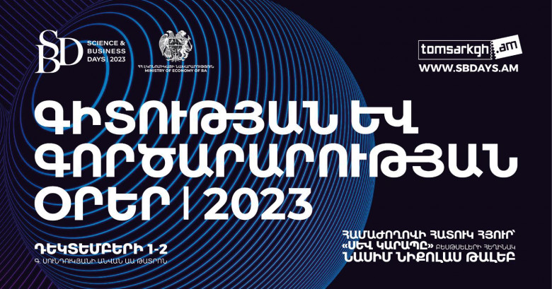 «Գիտության և գործարարությանն օրեր 2023» համաժողովը կանցկացվի դեկտեմբերի 1-2-ին Երևանում, ինչը հրաշալի հնարավորություն է մասնագիտական և լայն հասարակության համար աղերսվել փորձառնական գիտության ամենաթարմ գաղափարների, նորանոր տեխնոլոգիական լուծումների ու հայտնագործությունների հետ: