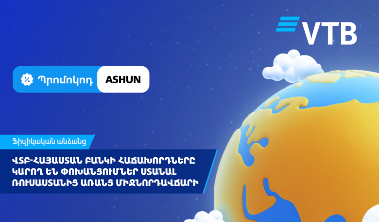 ՎՏԲ-Հայաստան Բանկի հաճախորդները կարող են փոխանցումներ ստանալ Ռուսաստանից առանց միջնորդավճարի