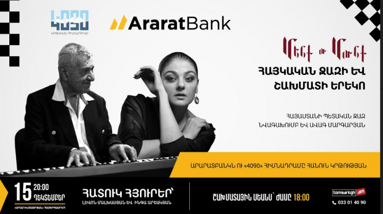 Դեկտեմբերի 15-ին Արամ Խաչատրյան համերգասրահում տեղի կունենա «Մենք ու Մունք» հայկական ջազի և շախմատի երեկոն, որի ողջ հասույթն ուղղվելու է «4090 Բարեգործական» հիմնադրամի շահառու՝ պատերազմի մասնակից ուսանողների կրթավճարի տրամադրմանը։