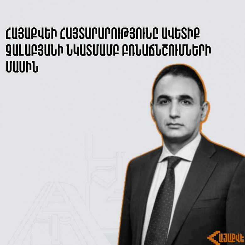 Համարում ենք, որ այս քայլով դատարանը կատարում է իշխող վարչախմբի ակնհայտ պատվերը՝ հանրային կյանքից ու քաղաքական գործընթացներից մեկուսացնելու իր առավել հետևողական ընդդիմախոսներին։ Ավետիք Չալաբյանի հանդեպ շինծու, պատվերով քրեական գործ հարուցելու, նախաքննության, դատաքննության ողջ ապօրինի ընթացքն ու արդյունքը ՀՀ-ում դատաիրավական համակարգի՝ բռնազավթված լինելու անհերքելի վկայությունն է։