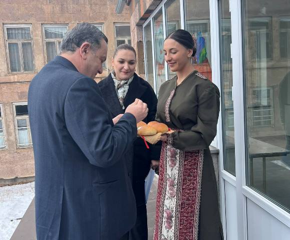 Բռնակոթի միջնակարգ դպրոցի տնօրեն Հայարփի Սահակյանը շնորհակալություն հայտնեց ՌՀՄ նախագահ Արա Աբրահամյանին և փոխնախագահ Ավետ Ադոնցին այցելության և նվերների համար: