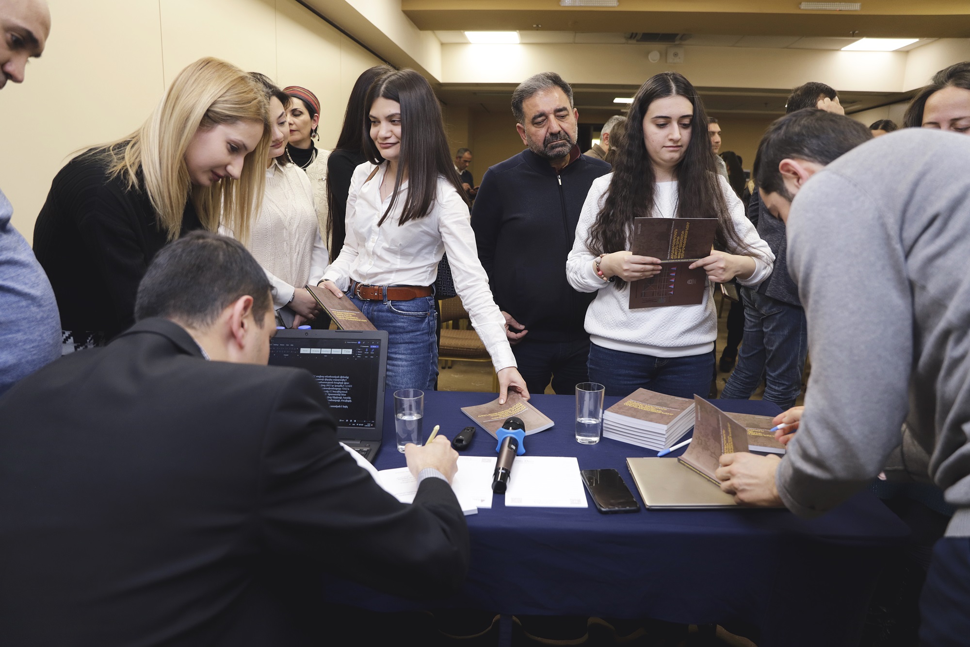 Աշխատությունը համահեղինակել են պատմական ժողովրդագրության մասնագետ, ԵՊՀ հայոց պատմության ամբիոնի դոցենտ, պատմ. գիտ. թեկնածու Միքայել Մալխասյանը, սոցիոլոգ, «Արար» քաղաքակրթական հետազոտությունների հիմնադրամի գործադիր տնօրեն, ԲՊՀ հանրային հաղորդակցության գիտաուսումնական կենտրոնի դասախոս Արմեն Խաչիկյանը և Նյու Յորքի Սբ. Նահատակաց եկեղեցու հոգևոր հովիվ, Սեյնթ Ջոնս համալսարանի պրոֆեսոր, աստվածաբանության դոկտոր Տ. Աբրահամ (Մանուկ) քահանա Մալխասյանը։ Գրքի շնորհանդեսին մոտ 100 ներկաներ հնարավորություն են ունեցել հնչեցնելու իրենց հարցերը հեղինակներին: