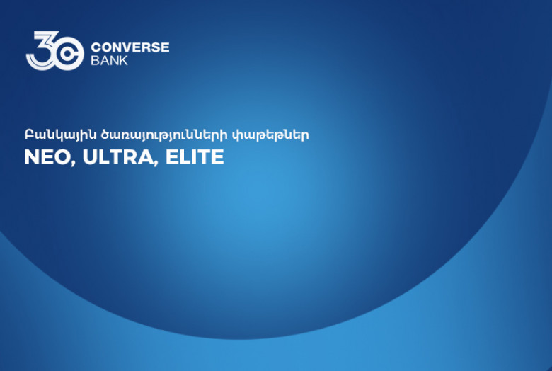 Կոնվերս Բանկը հայտարարում է Neo, Ultra և Elite բանկային ծառայությունների փաթեթների գործարկման մասին: Այցելելով Բանկի ցանկացած մասնաճյուղ՝ հաճախորդները կարող են ընտրել իրենց ֆինանսական կարիքներին առավելագույնս համապատասխանող փաթեթ, բաժանորդագրվել դրան և օգտվել մի քանի բանկային պրոդուկտից միասնական՝ ավելի ցածր սակագնով: