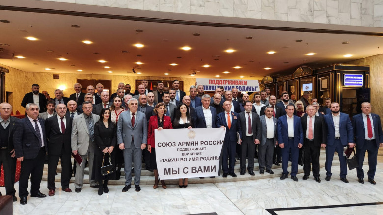 Մենք՝ Ռուսաստանի հայերի միության խորհրդի ընդլայնված նիստի մասնակիցներս՝ ՌԴ բոլոր տարածաշրջանները ներկայացնող աշխարհի ամենամեծ հայկական կազմակերպության տարածաշրջանային և տեղական բաժանմունքների ղեկավարները (Մոսկվա, Մոսկվայի մարզ, Կրասնոդարի երկրամաս, Կեմերովո, Ստավրոպոլ, Ուլյանովսկ, Օմսկ, Նովոսիբիրսկի մարզ, Տուլա, Յարոսլավլ, Կամչատկա, Նիժնի Նովգորոդ, Բրյանսկ, Տամբով, Իվանովո, Վորոնեժ, Սարատով, Թաթարստան, Բաշկրտոստան և այլն), հայկական մի շարք ազգային-մշակութային միավորումների ղեկավարները (Հայ դատ, Ջավախքյան սփյուռք, «Արարատ», Ռուսաստանում բնակվող Հայաստանի քաղաքացիների ասոցիացիա և այլն), հոգևորականության ներկայացուցիչները, հայկական գիտակրթական, մշակութային, զինվորական, դիվանագիտական, երիտասարդական, մարզական կազմակերպությունների ներկայացուցիչները, քննարկելով Հայաստանում տիրող իրավիճակը, ՀՀ իշխանությունների կողմից տարվող քաղաքականության հետևանքով նրա գոյությանը սպառնացող վտանգները, որոնք բերում են