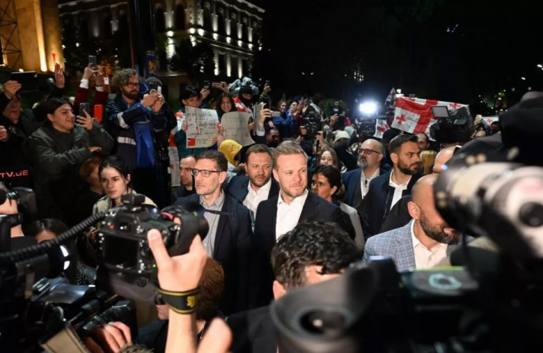 Ավելին, Թբիլիսիում գտնվող ԵՄ երկրների խորհրդարանների արտաքին հարաբերությունների հանձնաժողովի նախագահները միացան Ռուսթավելու պողոտայում «գործակալների մասին» օրենքի դեմ բողոքող ցուցարարներին։ Նրանց թվում էին Լիտվայի խորհրդարանի արտաքին հարաբերությունների հանձնաժողովի նախագահ Ժիգիմանտաս Պավլիոնիսը և Գերմանիայի Բունդեսթագի արտաքին հարաբերությունների հանձնաժողովի նախագահ Միխայիլ Ռոթը։ Եվրոպացի պաշտոնյաները ելույթ են ունեցել և իրենց աջակցությունը հայտնել ցույցի մասնակիցներին։