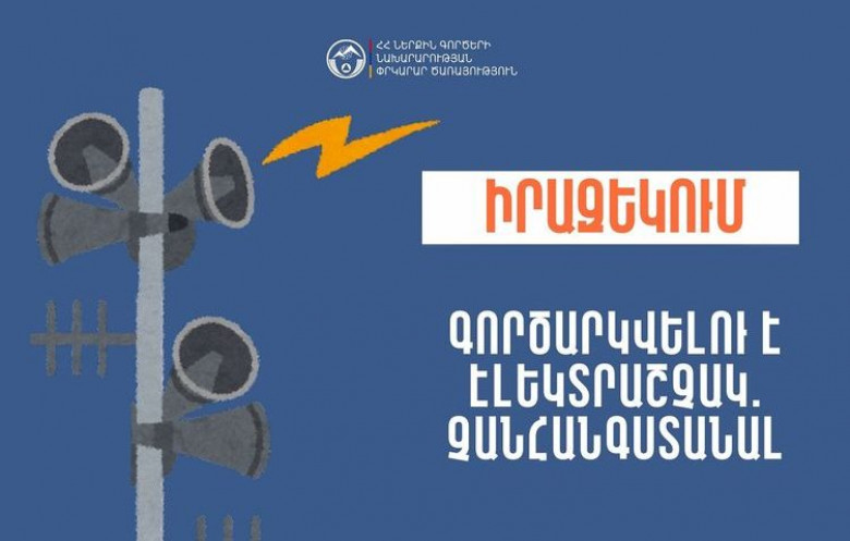 Նոյեմբերի 22-ին Լոռու մարզի Սպիտակ համայնքի Գեղասար բնակավայրում անցկացվելու է ««Օդային տագնապ» ազդանշանի դեպքում բնակչության պատսպարում» թեմայով գործնական պարապմունք, որի ընթացքում՝ ժամը 12:00-ին, գործարկվելու է էլեկտրական շչակ: