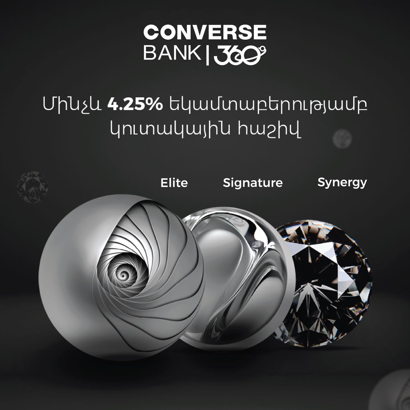 Հիշեցնենք, որ Կոնվերս Բանկի C360 փաթեթները գործարկվել են նախորդ տարվա վերջից:  Բաժանորդագրվելով փաթեթին Convers Mobile հավելվածի միջոցով՝ օգտատերերը ստանում են արտոնյալ պայմաններով բանկային ընդգրկուն ծառայություններ և միասնական սակագին: